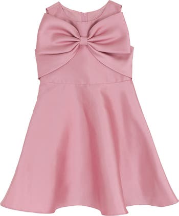 Your little fashionista will serve darling style in a sleeveless party dress with an oversize bow and a twirl-worthy circle skirt.