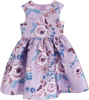 A garden of blooms adds to the charming detail of a party dress cut with a full skirt that's sure to inspire endless sashaying and twirling.