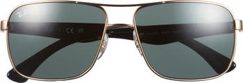 Golden logos brand the sturdy temples that hold a pair of square-framed sunglasses designed with full UV protection for a smart choice in everyday outings.