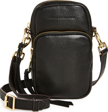 A patterned lining lends branded charm to this leather crossbody bag that has a special compartment for your phone and other essentials.