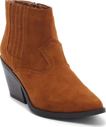Elevate your wardrobe with this soft faux-suede bootie featuring a pointed toe, easy side-zip closure and stacked block heel.