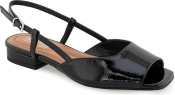 A sleek patent finish adds a modern flourish to a slingback sandal that's the perfect way to elevate your everyday attire.