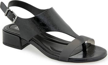 A well-cushioned footbed keeps you light on your feet in minimalist T-strap sandals detailed with a PVC vamp strap and a block heel for a little bit of a lift.