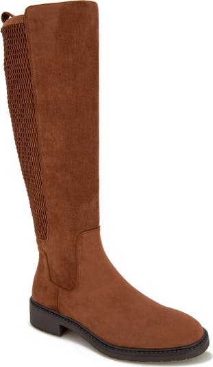 A textured inset-elastic shaft enhances the comfort of this soft suede knee-high boot framed by an easy side-zip closure and durable lugged sole.