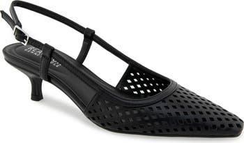 Diamond-cut perforations deliver a charming finish to a classy kitten-heel pump secured with a slender slingback strap.
