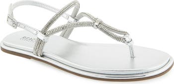Tonal crystals illuminate the strappy vamp of an elevated sandal that catches the light with every step you take.