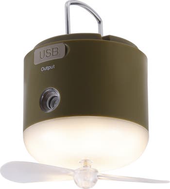 Illuminate your campsite or outdoor sanctuary with this compact, portable LED lantern featuring three brightness settings, an SOS flash mode and two cooling modes. This model features a fan that may be used with water to stay cool or mosquito repellent to keep bugs away. A rechargeable battery and USB-A port make it easy to charge and use on the go.