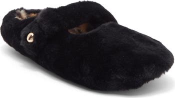 Kick back and relax in this warm, plush faux-fur scuff slipper lined in leopard-printed faux fur and grounded by a lightweight, grippy sole.