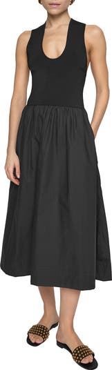This mixed-media dress serves up sporty-chic vibes with a ribbed racerback bodice fitted to a voluminous cotton poplin skirt perfected by handy pockets.