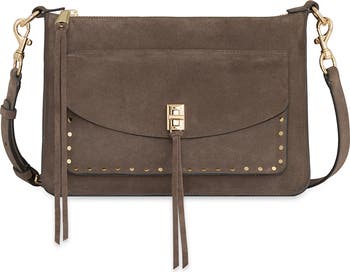 Signature tassels and round studs hang from the hardware of this rich leather crossbody bag featuring tonal studs that frame the front flap pocket and a lined interior to store essentials.