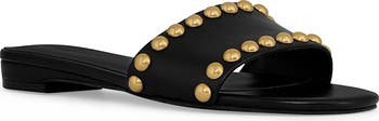Gleaming studs enhnace the modern glamour of a slide sandal rendered in luxe leather.