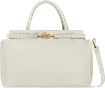Elevate your everyday look with this leather handbag that can be carried by the top handle or crossbody strap for versatile appeal.