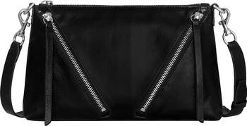 Signature tassels and glossy zippers detail this compact leather crossbody bag featuring a lined interior to store essentials.