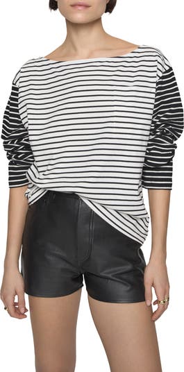 This cotton-jersey top is framed by ruched long sleeves and rendered in smart stripes for a timelessly casual look you'll reach for again and again.