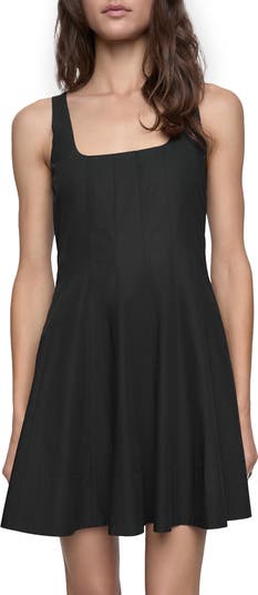 Sleek panels and streamlined tailoring combine sophistication with modern elegance on this fit-and-flare dress crafted of pure cotton.