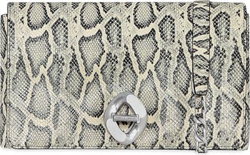 A gleaming chain strap and sassy snakeskin print bring eye-catching style to this compact crossbody that's perfect for a day or night out.