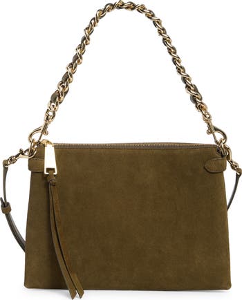 Gleaming logo hardware and a slouchy silhouette add modern elements to a spacious shoulder bag fitted with multiple straps for styling versatility.