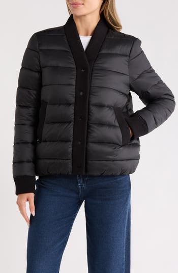 The perfect layer for chilly days, this water-resistant channel-quilted puffer jacket is framed by soft ribbing for enhanced comfort on the go.