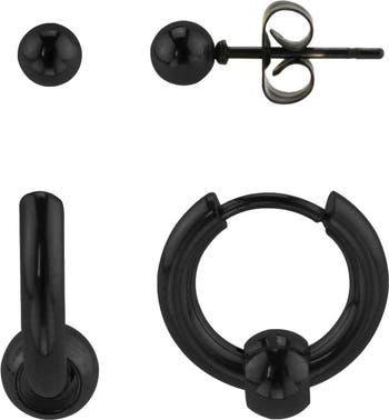 Switch up your stack as you mix and match this edgy set of ball hoop earrings and stud earrings.