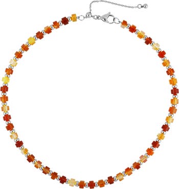Whether stacked or worn solo, this beaded necklace is sure to be a statement-making accessory.