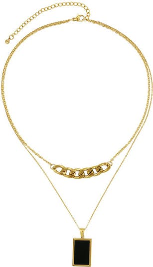 Get an instant stacked look with this one-and-done layered chain necklace anchored with a black agate pendant.