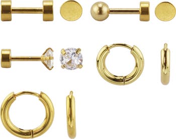 A matching set of hoops and studs creates an effortlessly stacked look for a chic, curated look to your lobes.