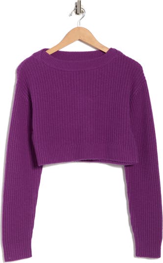Dropped shoulders and a cropped length further the relaxed aesthetic of this sweater knit from soft wool yarns.
