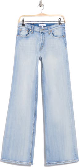 The label's fan-favorite wide-leg jeans are updated with a mid-rise top block but retain their '70s insouciance in lightweight stretch denim featuring a distressed, rodeo-whiskered wash.