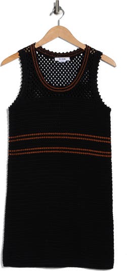Airy crocheted mesh keeps you cool and comfortable in a tank dress that's best worn on a day spent soaking up the sun.
