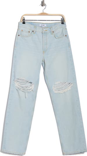 Ripped-out knees enhance the vintage vibe of these high-waisted loose fit jeans cut from comfortable cotton nonstretch denim.