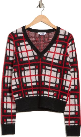 Tartan checks neatly pattern a cuddly V-neck sweater knit with a touch of wool and alpaca that warm your look on cooler outings.