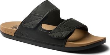 Stroll from the beach to boardwalk in this cushioned slide sandal featuring adjustable hook-and-loop straps, a molded footbed and flexible grip sole.
