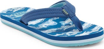 Give your kid beachy style with this shark-printed flip-flop featuring breathable mesh-lined straps and a textured grip sole.