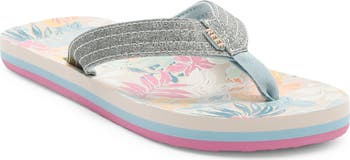 A vibrant print adds beachy fun to a water-friendly, kid-size sandal set on a soft, flexible EVA footbed for everyday comfort.