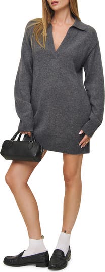A blend of recycled cashmere and wool adds a luxuriously soft feel to this relaxed sweater-dress knit to a leggy length with with ribbed trim for an ultracozy feel.