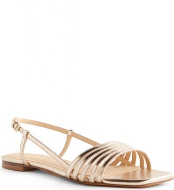 Strappy and smart, this low-slung leather sandal pairs a boldly blunted toe with a slender slingback heel for a look that's part vintage, party classic and always best-foot-forward.