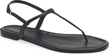 An elegant T-strap silhouette is elevated by a gleaming buckle along the slingback strap to boost your off-duty style.