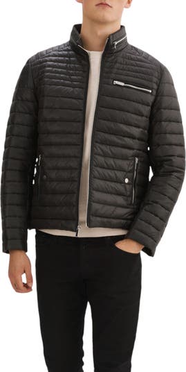 Channel quilt stitching brings a sporty appeal to update a full-zip jacket equipped with lightweight fill and a packable hood.