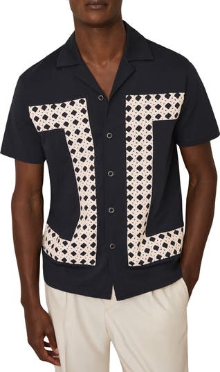 An intricate overlay against the breathable cotton fabric makes this camp shirt a getaway essential that'll see you stylishly from the pool deck to dinner at the resort.