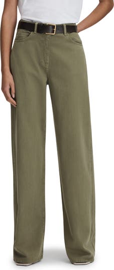 A high-rise waist and relaxed wide legs define the look of work-ready pants cut from a cotton-forward blend.