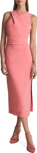 A crisscrossed neckline and ruched waist set the tone of this elegant midi dress that softly drapes against the body for an effortlessly refined look. A hidden back-zip closure ensures easy on-off before and after your big night.