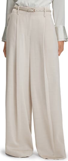 Ultrawide legs add a dreamy, dramatic aura to these high-waisted pants finished with front pleats for enhanced sophistication.
