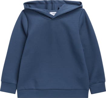 Keep your kid warm in this classic pullover hoodie cut from a soft interlock knit for essential comfort.