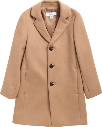 Have them look distinguished when the temperature drops in this single-breasted coat cut from a wool blend and framed with a handsome notched collar.
