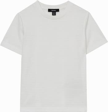 Tonal jacquard stripes refine a classic white T-shirt that your child can layer or wear alone.