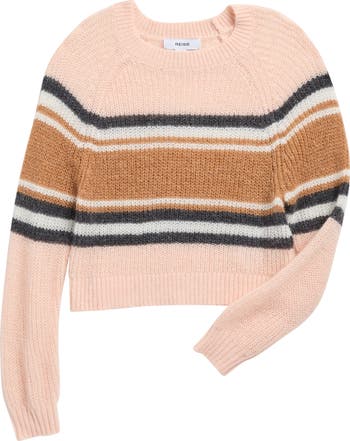 Perfect for building your kiddo's cold-weather outfits with, this striped crewneck sweater is knit from a blend of wool and alpaca yarns.