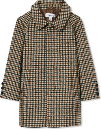 This car coat in a soft wool blend with classic checks is a dapper outerwear choice that will keep them warm in the colder months.