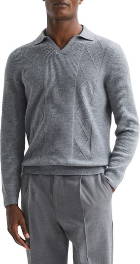 Soft, breathable wool brings exceptional comfort to a mixed-texture sweater styled with a sporty johnny collar and a fit that layers easily into your wardrobe.