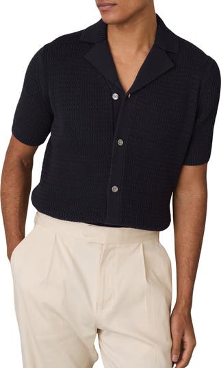 A fine textured knit brings pattern to the party in this camp shirt that keeps you cool and comfortable with soft, breathable cotton yarns.