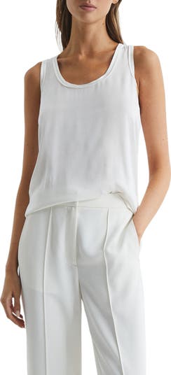 Layering in luxury is easy with this mixed-media tank cut from smooth stretch silk in front and softened with a viscose knit back panel.